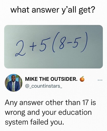 If that’s your idea of reversing the order, then you’re not talking about the same thing as SpaceCadet@feddit.nl. They’re talking about the order of operations and the associativity/commutativity property. You’re talking about the order of the symbols.