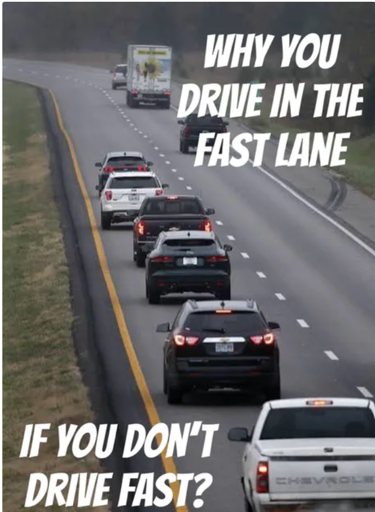 Learn to merge. When the exit ramp comes and the right lane slows, pass in the left lane and move the fuck back. You know what happens when you left lane camp, road rage and everyone speeds up to zoom in the right lane causing a danger to everyone els. Because your ass can’t merge and feel you’re special to be in the left lane does not mean you’re right for thinking you’re doing the speed limit. If someone wants to go fast to pass you doesn’t mean you’re the traffic police to block them and cause the speeder to road rage even more. Left lane camping causes road rage and is unsafe.