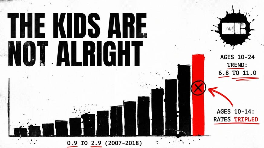 Meh it wasnt that many years ago kids would have been mining coal for 4 or 5 years by 14, yet for some reason they still werent killing themselves. Maybe this is worrisome