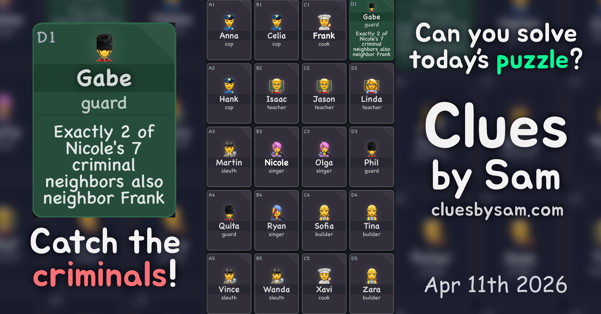 arrow-up15arrow-down1external-linkClues by Sam [2026-04-09]cluesbysam.comKanadrAllegria@lemmy.ca to dailygames@lemmy.zipEnglish · 9 days agomessage-square0linkfedilinkfile-textcross-posted to: dailygames@lemmy.zipdailygames@lemmy.zipdailygames@lemmy.zipdailygames@lemmy.zipdailygames@lemmy.zipdailygames@lemmy.zipdailygames@lemmy.zipdailygames@lemmy.zipdailygames@lemmy.zip