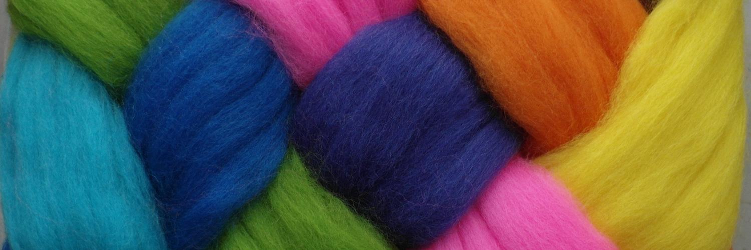 Header: breiter geflochtener Zopf aus bunten Kammzügen